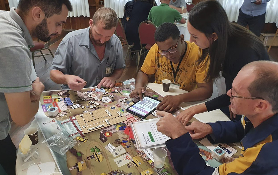 Além do mapa, o workshop conta com diversos elementos físicos como jogos, personagens, cards, entre outros… Durante a jornada são apresentadas animações de altíssima qualidade, com diversos temas técnicos trazidos de forma leve e objetiva. Além disso há também um aplicativo utilizado durante a dinâmica que ajuda a engajar e dar o feedback instantâneo de evolução e pontuação para as equipes, criando um verdadeiro ambiente de jogo competitivo.